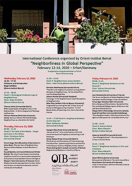 The question of neighborliness thus is also a theological, ethical and political-philosophical one. This makes it a concept apt to reflect on the human capacity of co-existence throughout global history.