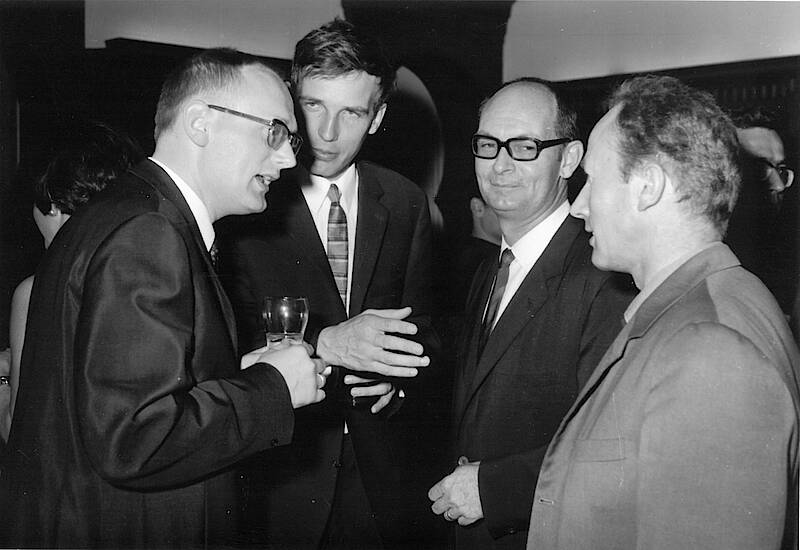 Werner Ende (left) with Stefan Wild, André Raymond and Michel Allard at the OIB, autumn-winter semester 1969-70. Photo and information from the personal collection of the deceased.