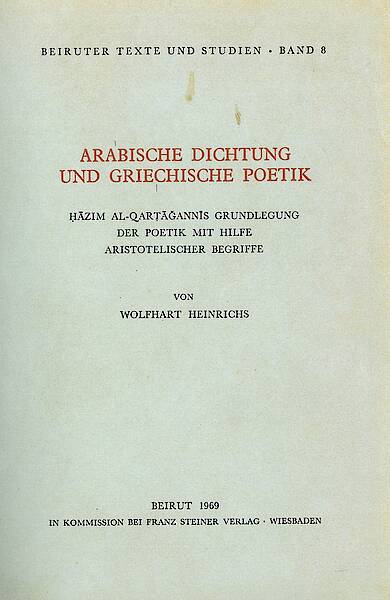 Wolfhart Heinrichs analyzes the influence of Greek poetics on the development of Arabic poetry. In the first part, Heinrichs illustrates the principles and theory of poetry. In the second part, he examines the rise of the philosophical-Aristotelian poetics in the Arab-speaking world and, in particular, in the work of Hāzim al-Qartāgānnī. The third part of the book contains a translation of Hāzim’s main work on the basic principles of poetics.
