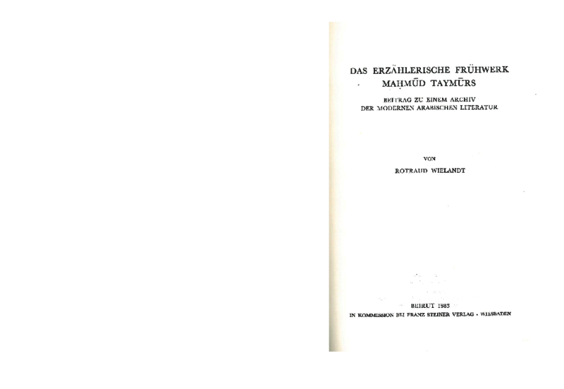 Beginning with his Egyptian background, Prof. Wielandt analyses Maḥmūd Taymūr’s early works under selected topics, such as the types and elements of narration, the language used and the technique of reissue.