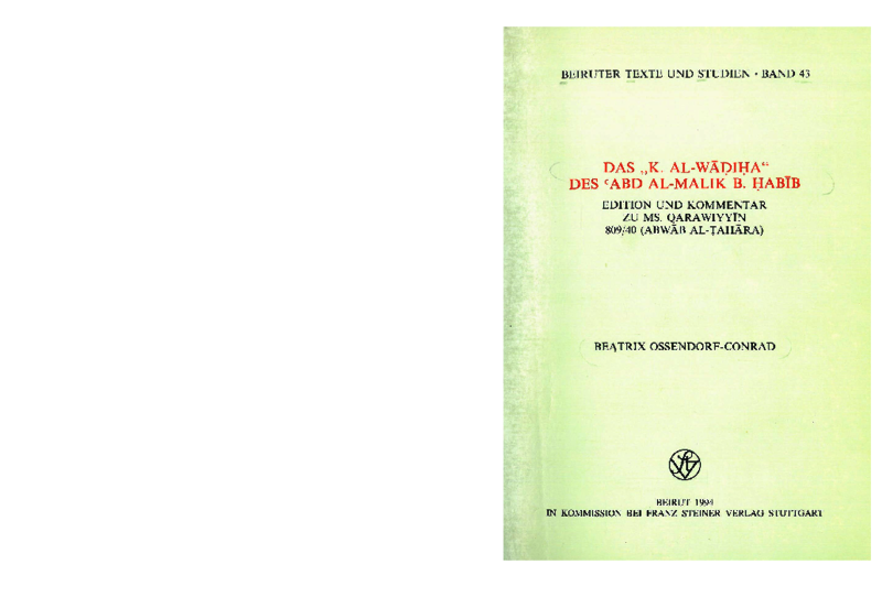 Beatrix Ossendorf-Conrad dealt with ritual purity and Miklos Muranyi edited the manuscripts on prayer and pilgrimage.