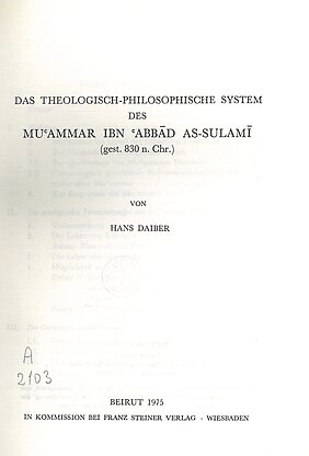 In his work, Daiber deals with the theological-philosophical ideas of Muʿammar Ibn ʿAbbād al-Sulamī, a leading Muʿtazilite of the 8th and 9th century. Daiber therefore analyses different aspects of the doctrine of al-Sulamī, for instance the doctrine of God, the physical worldview as well as the anthropology and his position to the imamate.