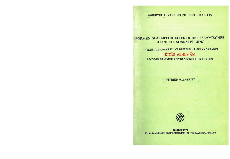 In his publication, Prof. Weintritt examines four medieval works, the Kitāb al-Ilmām by an-Nuwairī and three biographies of sultans. These works contain information about historical persons and events, but all of them contain a small amount of historical evidence. Especially the description of the Muslim enemies creates a devastating image of their power and success, whereas the Muslim rulers are glorified.