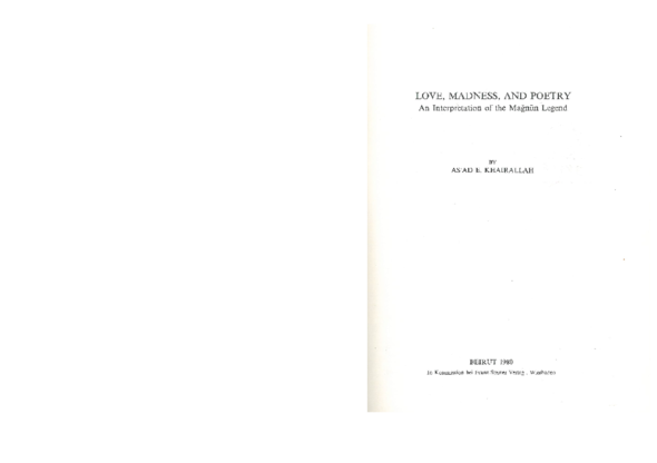 In his work, Prof Khairallah examines the Maǧnūn archetype. Beginning with the cultural background and the early development of the legendary Maǧnūn, he therefore analyses Wālibī’s dīwān of Maǧnūn under the aspects of love, poetry and madness. In the last part, he leads over to Ğāmī’s interpretation of Maǧnūn in the context of Ṣūfī symbolism.
