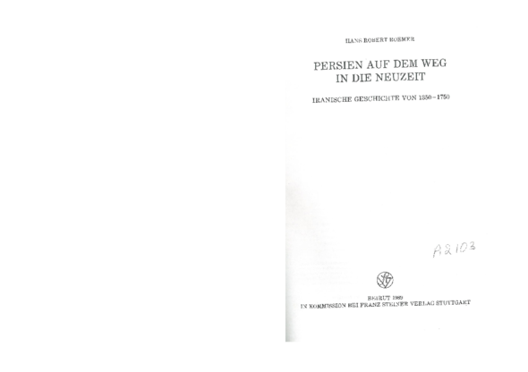 In his publication, Prof. Roemer illustrates the history of Persia from the 14th to the 18th century. Beginning with the Persian Empire after the invasion of the Golden, he analyses the rise and fall of the Safavid Empire in these 400 years of Persian history.